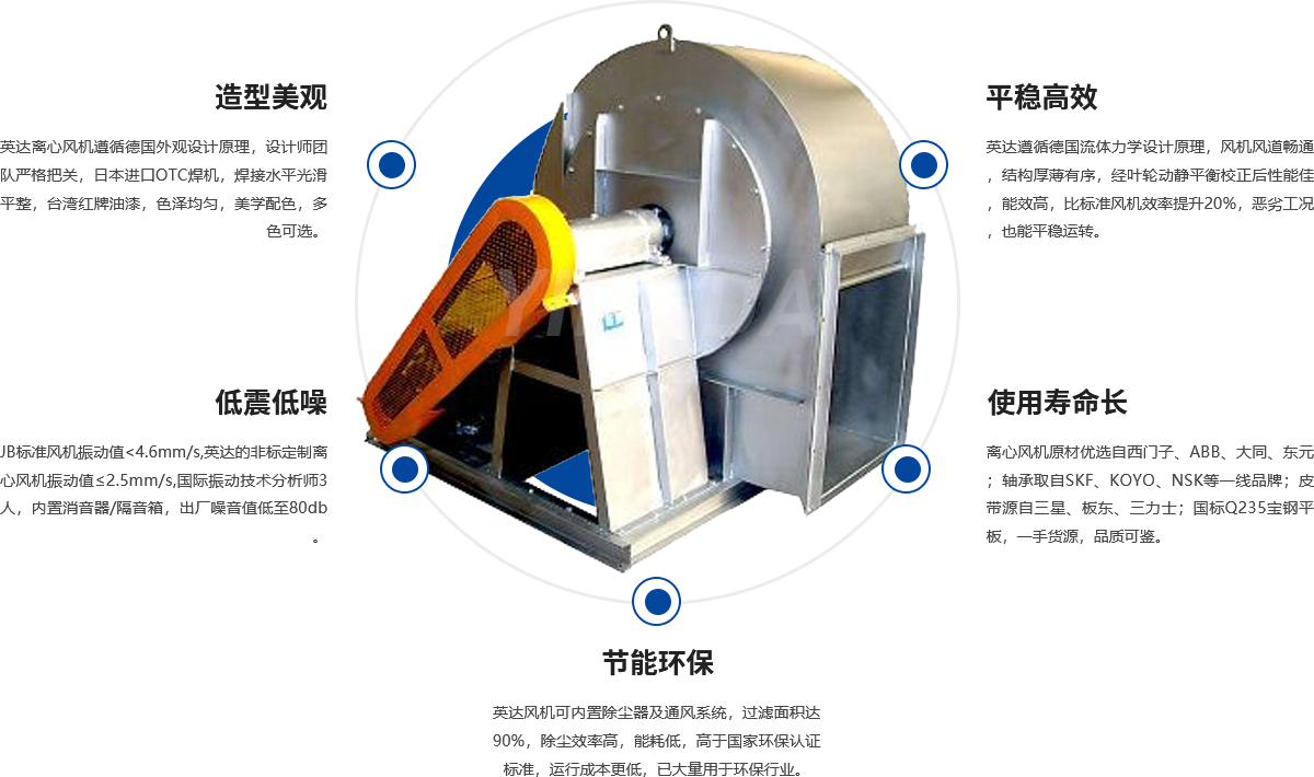 風機葉輪、機殼可選用優(yōu)質Q235碳鋼,304不銹鋼,玻璃鋼纖維,全部模具化生產(chǎn),采用電焊、手段,表面清潔平整、不存在焊接變形現(xiàn)象,葉輪經(jīng)動、靜平衡校正,其平衡精度不大于4.0級。