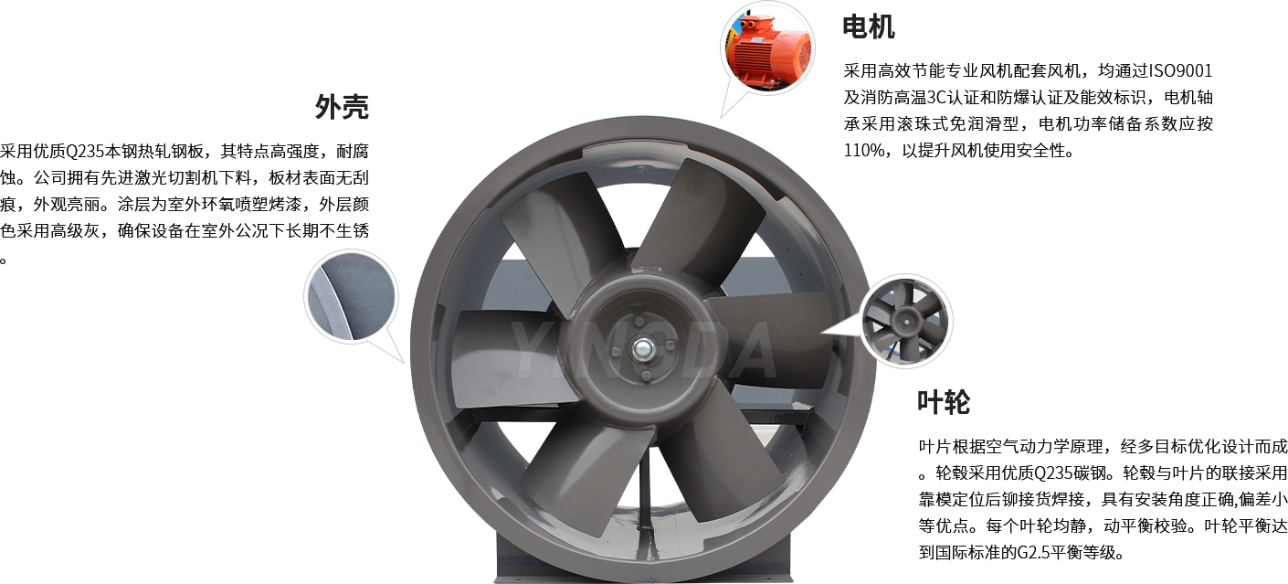 用途:普通送排風(fēng)、防爆送排風(fēng)、正壓送風(fēng)、消防排煙等