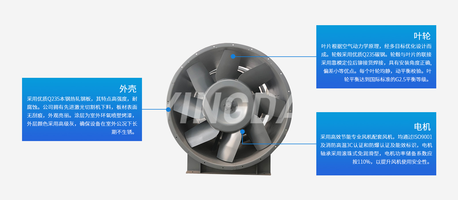 用途:普通送排風(fēng)、防爆送排風(fēng)、正壓送風(fēng)、消防排煙等