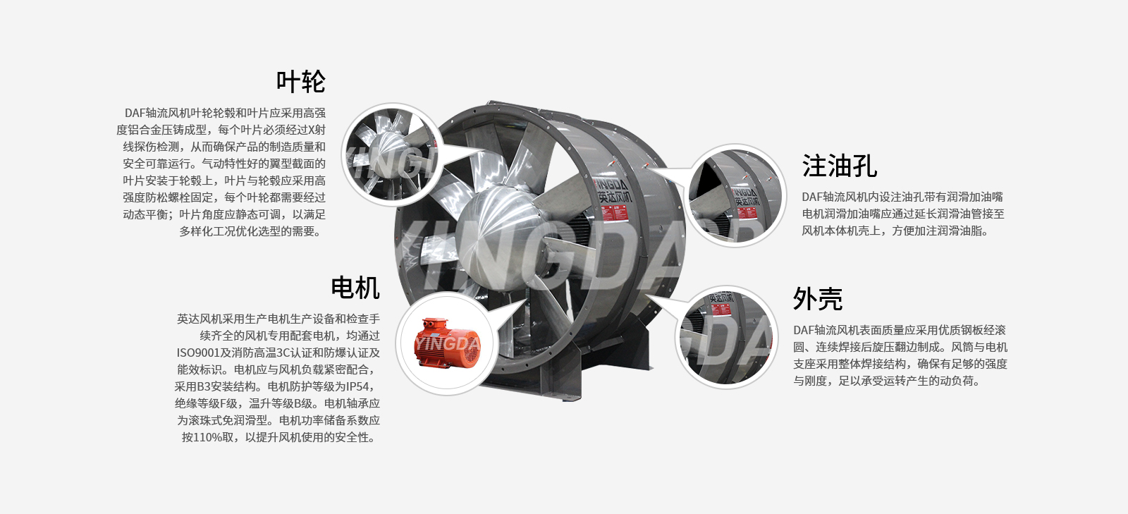 DAF軸流風(fēng)機(jī)內(nèi)設(shè)注油孔帶有潤滑加油嘴電機(jī)潤滑加油嘴應(yīng)通過延長潤滑油管接至風(fēng)機(jī)本體機(jī)殼上,方便加注潤滑油脂。