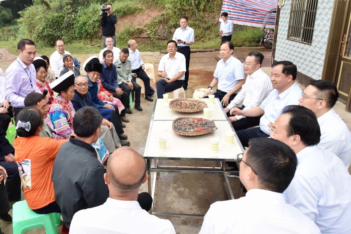 在白臘苗族鄉(xiāng)高峰村,陳肇雄一行實地查看了“支部共建、結對幫扶”機制落實情況,聽取了村委會發(fā)揮“黨建扶貧綜合陣地”作用,為黨員活動、技術培訓、農產品上網、鄉(xiāng)村醫(yī)療等提供“硬件”條件,幫助提升黨建、民生服務和智慧農牧業(yè)的情況介紹,鼓勵大家要用好信息技術手段提高本領。