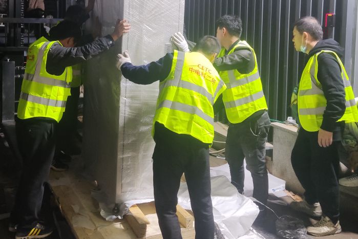 在設(shè)備進(jìn)場時(shí),正趕上太原市連日降雨、氣溫驟降,為了不耽誤項(xiàng)目進(jìn)度,項(xiàng)目組決定在保證安全的前提下連夜冒雨作業(yè)。微信群內(nèi)的消息剛一發(fā)出,“收到”“明白”“馬上到”,一條條簡短的回復(fù)從手機(jī)上彈出,大家無一例外的準(zhǔn)時(shí)出現(xiàn)在項(xiàng)目現(xiàn)場,卸貨、搬運(yùn)、拆包,期間馬不停蹄地投入工作。團(tuán)隊(duì)齊心協(xié)力,奮力拼搏,確保了設(shè)備按時(shí)進(jìn)場。初冬的寒風(fēng)陣陣襲來,冰冷的雨水和汗水交織在一起,描繪出團(tuán)隊(duì)奮戰(zhàn)四季度的最美畫卷。