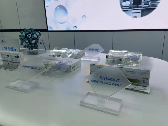 石家莊市國際生物醫(yī)藥園規(guī)劃展館內(nèi)展出的部分藥品。 邵玉姿 攝