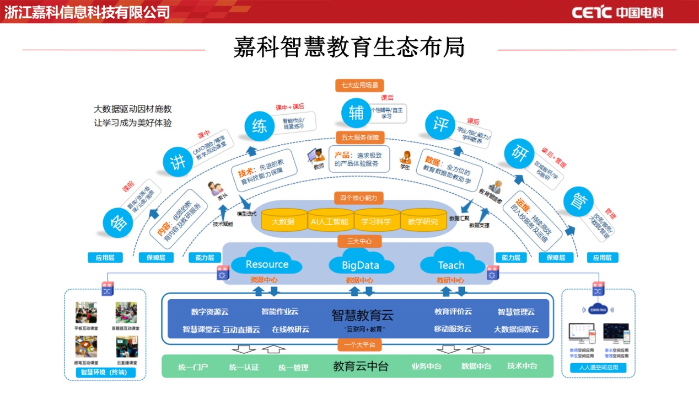 目前,教育信息化浪潮席卷全國(guó)?!半p減”政策的出臺(tái)更是將家校聯(lián)通的重要性提高到了新的高度。校園信息化的部署顯得尤為重要。中國(guó)電科嘉科信息打造的智慧教育方案,通過(guò)“一個(gè)平臺(tái)”“兩個(gè)中心”“三大核心能力”“四大服務(wù)體系”,提供“七大應(yīng)用場(chǎng)景”服務(wù)。