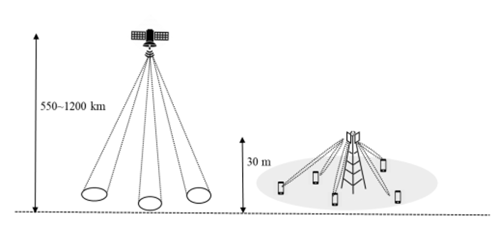 圖 3 衛(wèi)星波束與蜂窩基站覆蓋方式對比