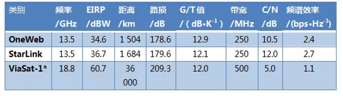 低軌衛(wèi)星至地面用戶的傳輸距離遠小于GEO-HTS,在路徑損耗方面具備約30 dB的優(yōu)勢(如表6)。但GEO-HTS采用的大衛(wèi)星平臺支持更大的發(fā)射功率,可以部分彌補其路徑損耗。例如,ViaSat-1衛(wèi)星的等效全向輻射功率(EIRP)比StarLink衛(wèi)星高24 dB,在采用增益與系統(tǒng)噪聲溫度比(G/T)值同為12 dB/K左右的用戶終端時,ViaSat-1用戶接收機的載波噪聲比(C/N)比StarLink低7 dB,因此,其頻譜效率更低。換言之,低軌衛(wèi)星在地表的信號強度比GEO-HTS約高7 dB,若要實現(xiàn)相同的頻譜效率,其用戶終端天線孔徑約為GEO-HTS的一半。表 6 低軌星座和GEO-HTS用戶下行鏈路預(yù)算注:未查到ViaSat-3衛(wèi)星的鏈路預(yù)算資料,用ViaSat-1衛(wèi)星的進行估計。