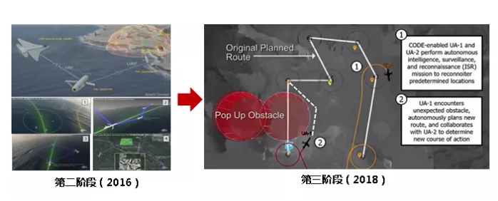 第三階段從2018年1月開始,測試使用6架真實無人機以及模擬飛機的協(xié)同能力,實現(xiàn)單人指揮無人機小組完成復雜任務。