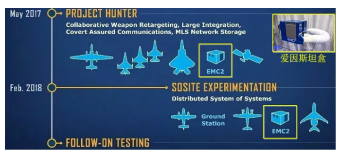在SoSITE項目的最新試驗中,使用了臭鼬工廠開發(fā)的復雜組織體開放式系統(tǒng)架構(E-OSA)任務計算機版本2(EMC2),即所謂的“愛因斯坦盒”,如圖7所示。洛克希德·馬丁公司開發(fā)的E-OSA兼容了美空軍OMS標準。“愛因斯坦盒”可為系統(tǒng)之間的通信提供了安全保護功能,在將相關能力部署到操作系統(tǒng)之前,“愛因斯坦盒”能夠確??焖俣踩膶嶒?。“愛因斯坦盒”不僅是一個通信網(wǎng)關,它可被比作一部智能手機,能夠運行很多不同的應用程序,具備實現(xiàn)動態(tài)任務規(guī)劃、ISR以及電子戰(zhàn)的能力。